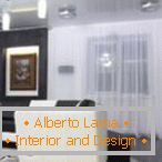 На фотографии ниже дизайнер применила замечательные черно-белые обои «Woods» от английской фабрики Cole & Sons. Вертикальные полосы в виде деревьев прекрасно подчеркивают высоту комнаты.