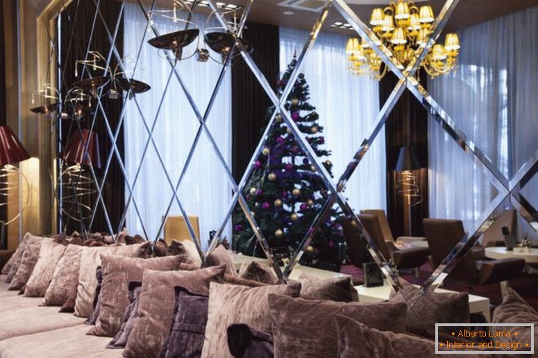 Ebben a konyhában a geometriai elemeket széles körben használják. Az ajtónál négyzetek láthatók (itt üvegből készültek), a padlóburkolat pedig márvány alakú. A mennyezetre fénycsarnokok hangzik vissza.