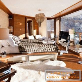 Az ilyen tájékozódás érdekében a falak pasztell árnyalatúak, ebben a kialakításban hófehér, fa padlófelület és színes telített díszek, amelyek hihetetlen hatást eredményeznek.