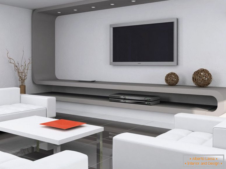 - Az avantgarde stílusának megtestesülése érdekében fekete-fehér vörös, igényes zónák és szigorú geometriai vonalak alkalmazása szükséges.
