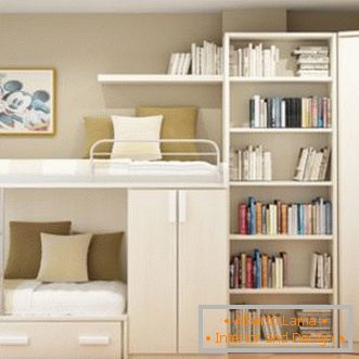 A sarokban volt egy hely a pihenésre és a munkára. A polcokon rajzokkal és irodalmakkal ellátott mappákat tároltak. A matrac a kemény padlót egy kanapéba forgatta, és hosszú ideig hagyta, hogy ne zavarta. Egy kis asztal elég volt ahhoz, hogy megtervezze a papírokat, felkészüljön előadásokra és készítsen tervrajzokat.