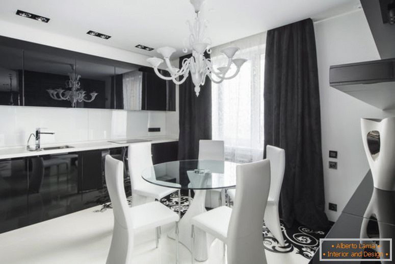 Egy üres ember, vagy egy pár szerelmes, aktív fiatal, nincs semmi jobb, mint egy stúdió. Ezért ebben a verzióban a konyha és a szobák közötti összes partíció le van bontva. A tér csak vizuálisan zónákra oszlik, és tökéletesen tágasnak tűnik.