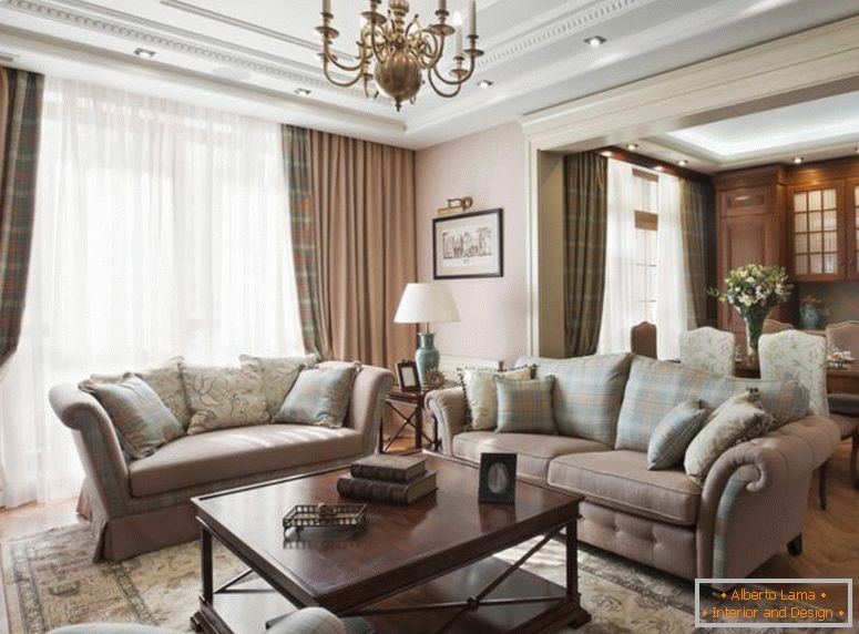 Az észak felé néző kis szobák meleg, világos színekkel díszítettek, tágas "déli" - hideg, sötétben.