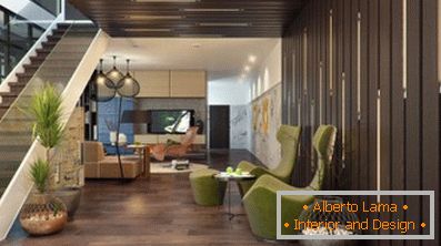- A "zöld" fal. Organikusan öko-stílusban és más irányokban néz, a belső elemek felé gravitálja, de a fény és a zajszigetelés szempontjából hatástalan.