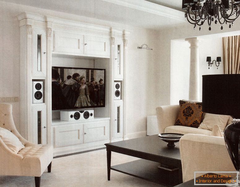 A vonalak szigorúságát elősegítő minimalizmust és a belső elemek hasznos elemeinek rendelkezésre állását mutatja, hogy a zónát egy partícionálás határozza meg, amely egy televíziós állvány és egy mini rendszer a sajtó és a mindennapi élet kis tételeinek tárolásához.